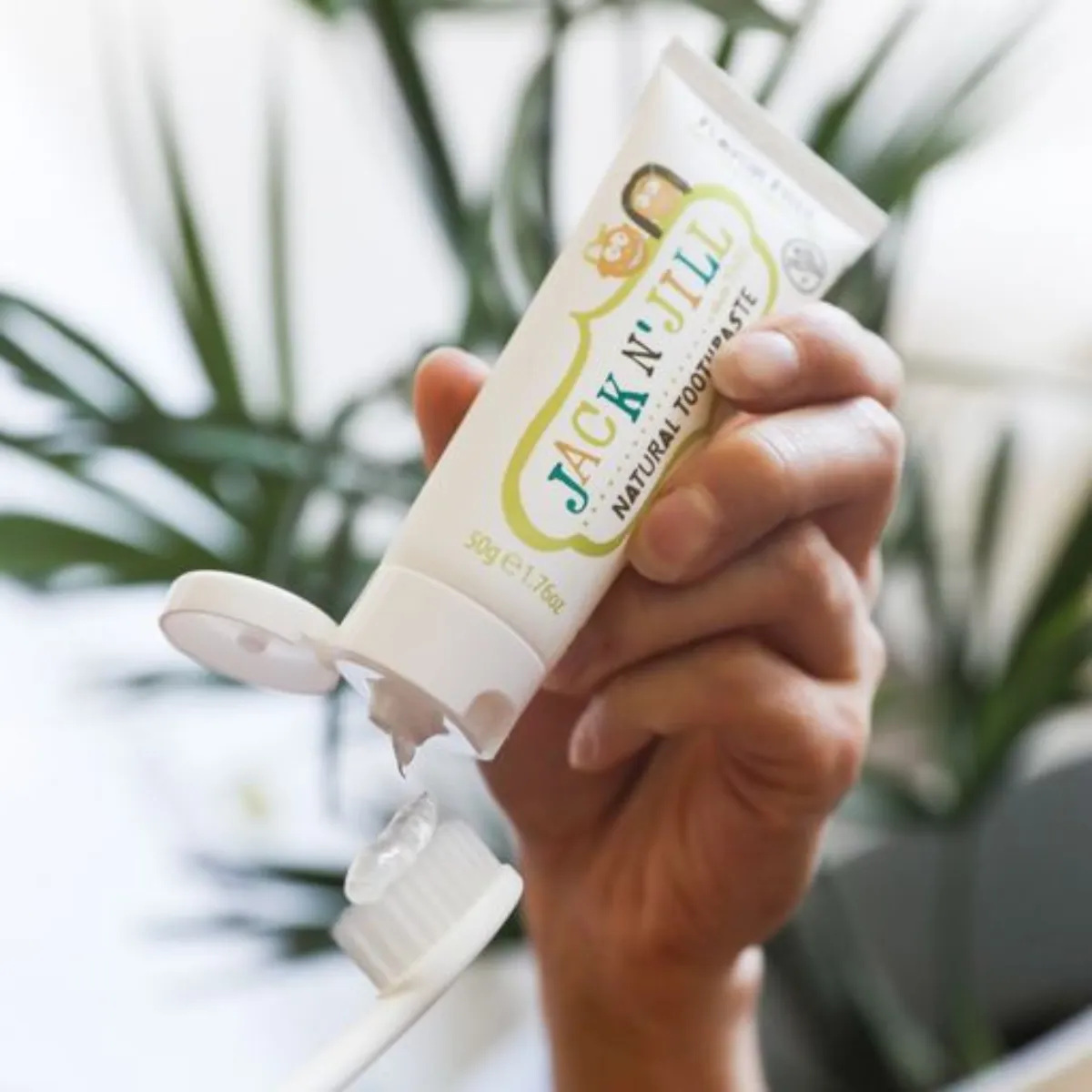 Naša jemná gélová receptúra neobsahuje fluorid a je vhodná pre deti už od 6 mesiacov (kedy sa bábätkám zvyčajne začínajú prerezávať prvé zúbky). Vieme, že malé deti ešte nevedia vypľúvať – zubná pasta Jack N‘ Jill je preto bezpečná aj pri prehltnutí.