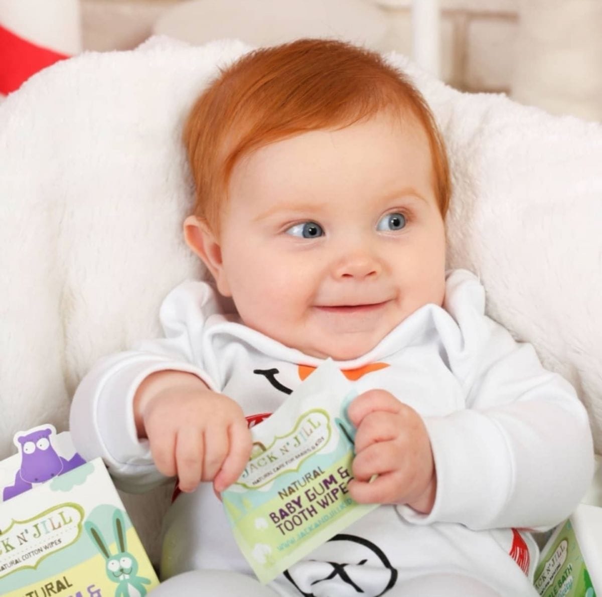 Obrúsky na ďasná a zuby Jack N’Jill sú úplne rozložiteľné, maximálne bezpečné a vyrobené zo 100 % jemnej bavlny s obsahom xylitolu.