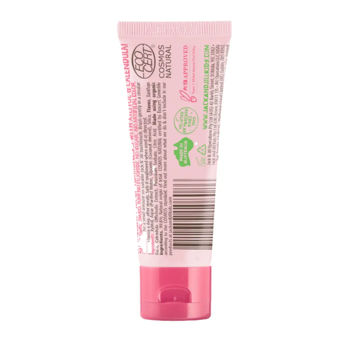 Naša jemná gélová receptúra neobsahuje fluorid a je vhodná pre deti už od 6 mesiacov (kedy sa bábätkám zvyčajne začínajú prerezávať prvé zúbky). Vieme, že malé deti ešte nevedia vypľúvať – zubná pasta Jack N‘ Jill je preto bezpečná aj pri prehltnutí.